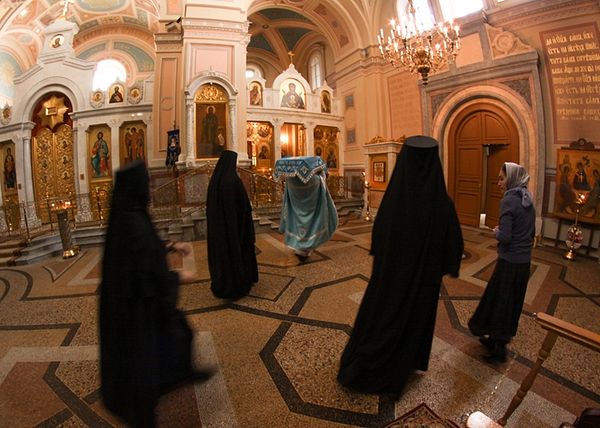 К новой монахине могли входить только игуменья, келейница и духовник. Даже на общем богослужении присутствовать ей запрещалось – для нее одной изредка служили в надвратном храме.