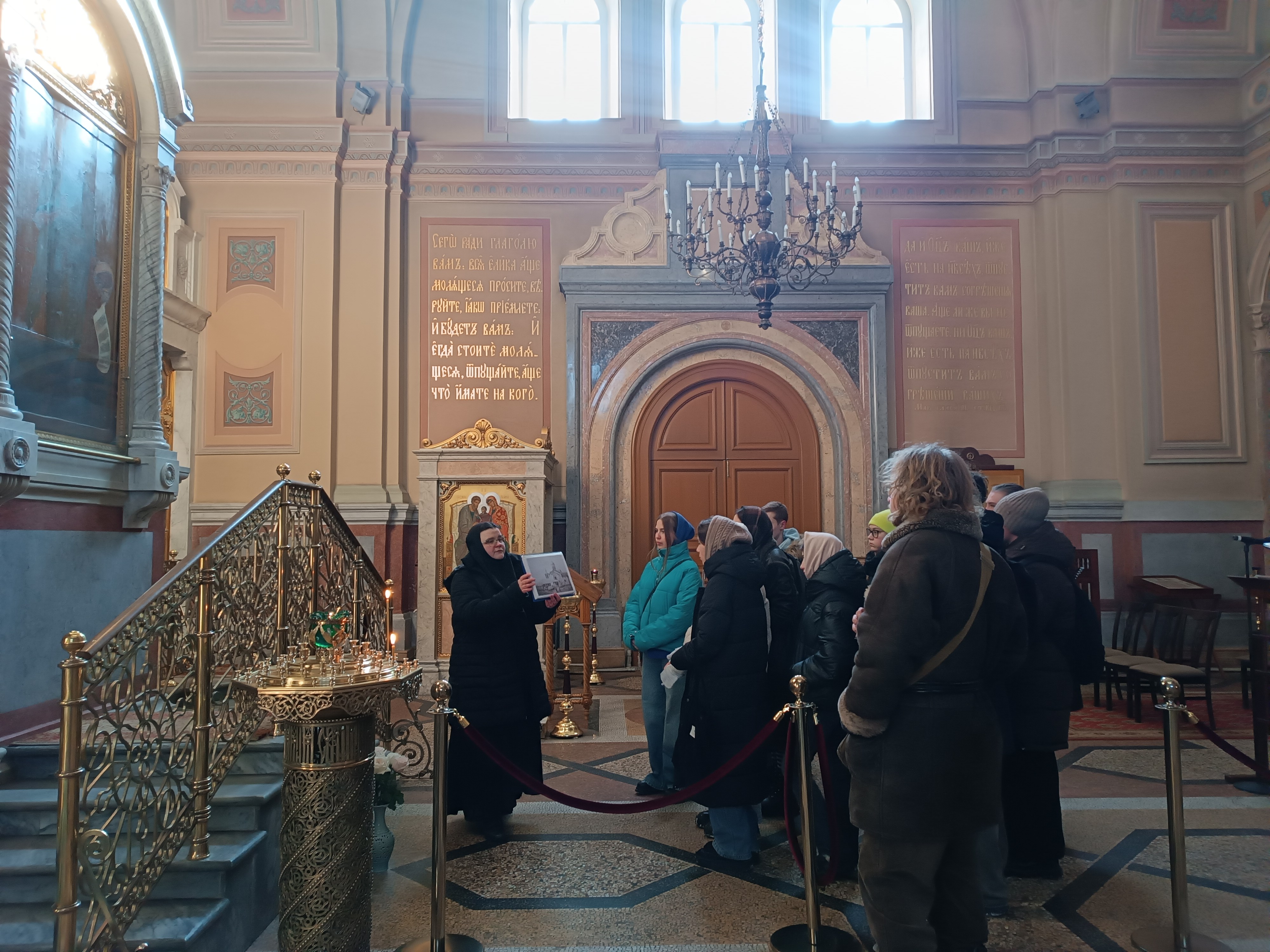 12 и 17 февраля 2026 года студенты 2 курса отделения реставрации колледжа 26 кадр, которые заявили о своем желании принять участие в проекте «Время собирать камни…» в качестве волонтеров, посетили Иоанно-Предтеченский ставропигиальный женский монастырь. Экскурсии по обители и монастырскому музею провела насельница монастыря монахиня Феонилла.